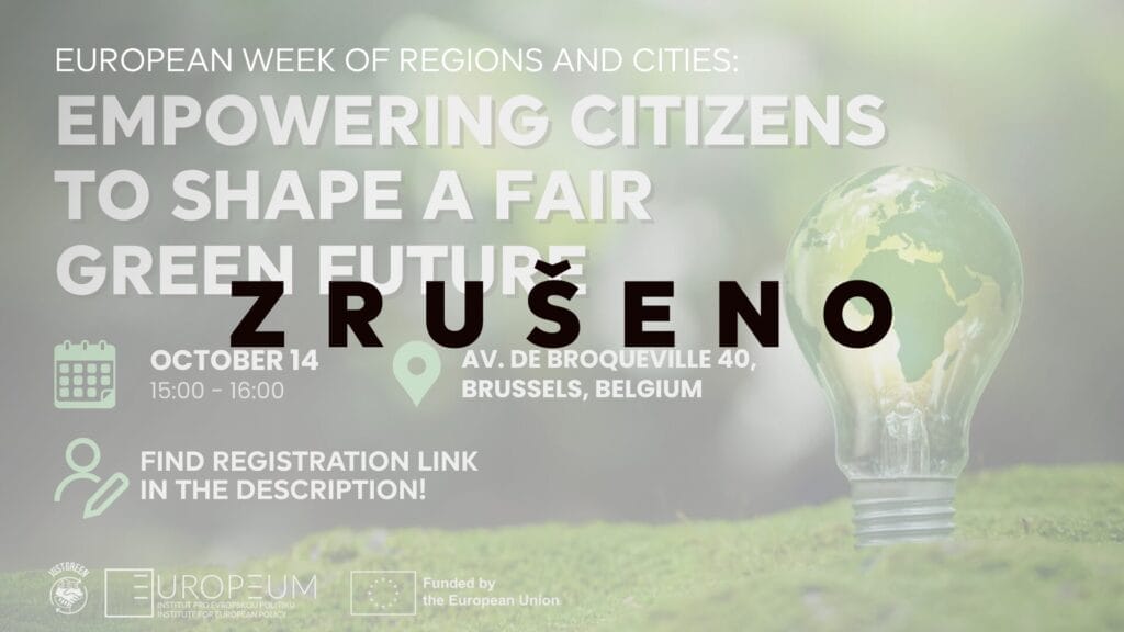 Přidejte se k nám a iniciativě JustGreen na Evropském týdnu regionů a měst v Bruselu a zjistěte, jak mohou hlasy občanů přispět ke spravedlivé a inkluzivní budoucnosti. Naše akce s názvem „Posilování postavení občanů při utváření spravedlivé zelené budoucnosti“ se bude zabývat tím, jak zajistit, aby byla zelená transformace inkluzivní.