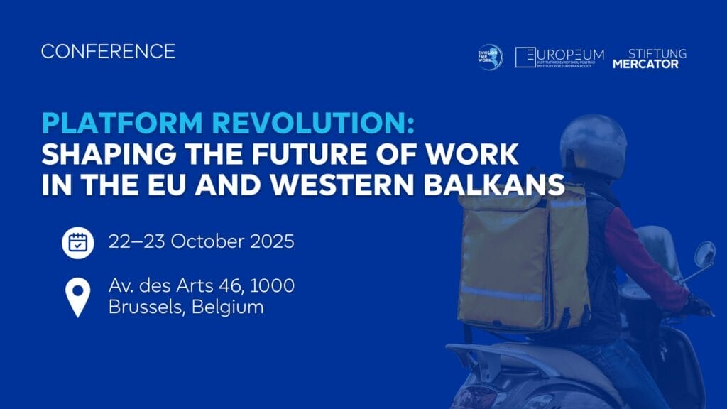 Během dvou dnů se na konferenci setkají tvůrci politik, výzkumníci a zástupci občanské společnosti, aby:👉 zmapovali realitu platforemní práce na západním Balkáně a ve státech V4👉 prozkoumali překážky regulace a Směrnici o platforemní práci👉 diskutovali o politikách pro spravedlivou, udržitelnou a inkluzivní práci 📍 Av. des Arts 46, Brusel📅 22.–23. října 2025 📝 Registrujte se […]
