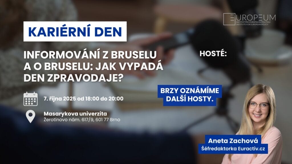 Zveme vás na debatu, během které nahlédnete do každodenního života bruselského zpravodaje. Po skončení se můžete zastavit u našeho stánku, kde se dozvíte více o aktivitách a stážích v Institutu EUROPEUM.