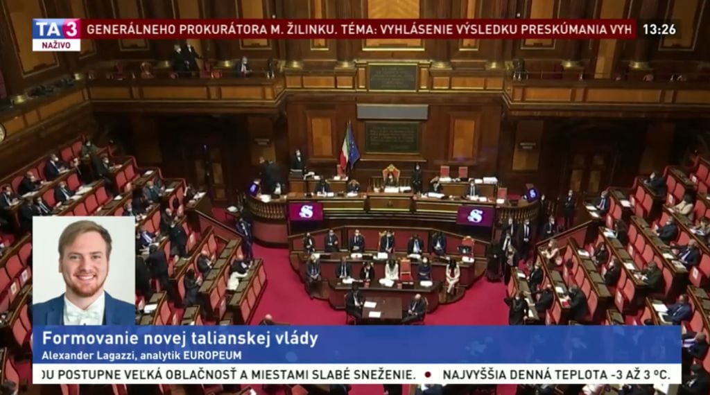 The cabinet of the new Italian Prime Minister Mario Draghi has gained confidence in the Senate. The government is still awaiting a vote in the Chamber of Deputies. The cabinet of the former head of the European Central Bank is also expected to succeed there. Alexandr Lagazzi, a research associate of the Europeum Institute, told more about this topic for Slovak television TA3.