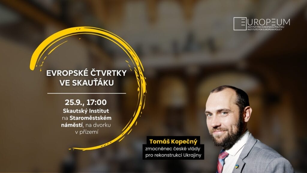 Každý poslední čtvrtek v měsíci se scházíme ve Skauťáku a bavíme se o aktuálních evropských tématech! Evropské čtvrtky jsou prostor pro všechny, kteří se zajímají o Evropu a pro setkávání se s lidmi z institucí, ministerstev a organizací. Přijďte si užít otevřenou diskuzi a přátelský networking! Nejbližší setkání proběhne ve čtvrtek 25. září od 17:00 ve Skauťáku. Přijďte na otevřenou diskuzi s Tomášem Kopečným, zmocněncem české vlády pro rekonstrukci Ukrajiny, který uvede kontroverzní hot take k Evropě a našemu místu v ní.